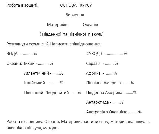 Робота в словнику. Океани, Материки, частини світу, материкова півкуля, океанічна півкуля, методи.