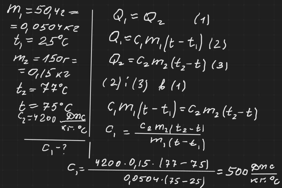 Правильный ответ: с = 500 (Дж/кг*С) - сталь