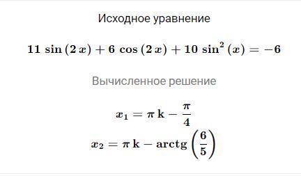 https://mathdf.com/equ/ru/#expr=10sin%5E(2)x%2B11sin(2x)%2B6cos(2x)%3D-6&arg=x вот ссылка где есть пошаговое обяснение