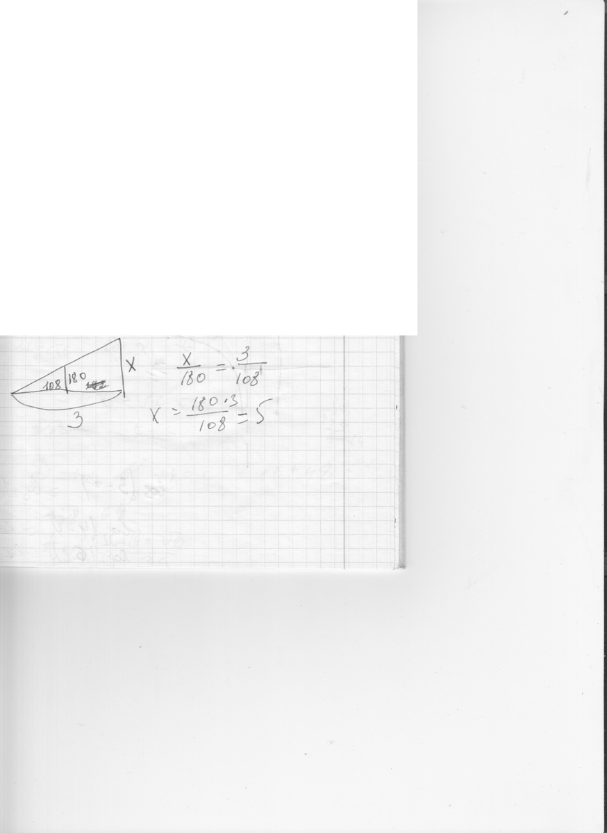 Пусть х-длина дерева. составим пропорцию. 180:x=108:3, тогда х=180*3/108=5м