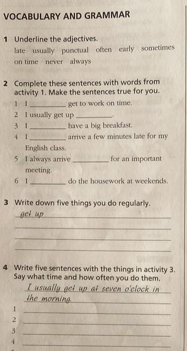 i always get up early, i never be late for school, i always do my homework, i never dont do my job
