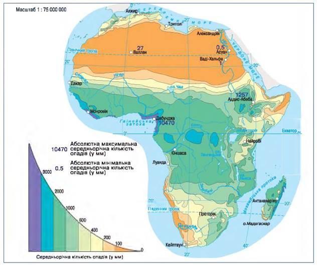 За картою простежте, як змінюється кількість опадів уздовж 20° сх. д. Назвіть райони Африки з найбільшою і найменшою кількістю опадів. СРОЧНО ДАЮ БАЛОВ 100