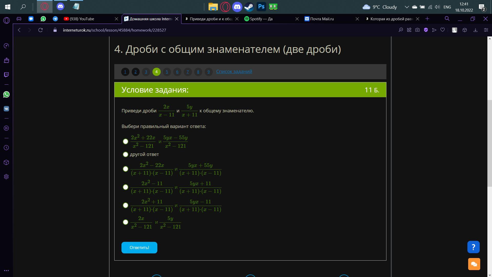 Приведём дроби к одному знаменателю. Для этого числитель и знаменатель 1 дроби умножим на знаменатель 2 дроби и наоборот, числитель и знаменатель 2 дроби умножим на знаменатель 1 дроби .