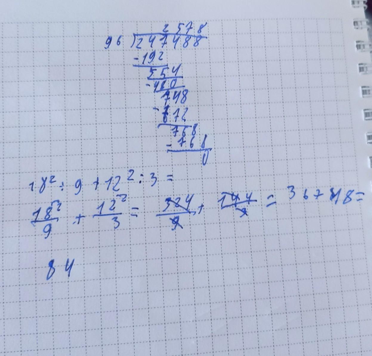 18² : 9 + 12² : 3 = 324 : 9 + 144 : 3 = 36 + 48 = 84