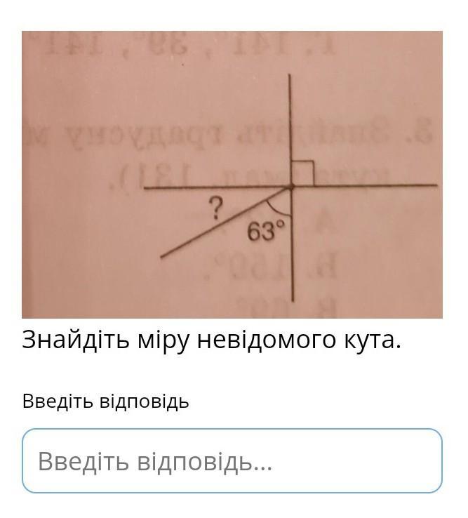 Відомий кут має міру 63*
