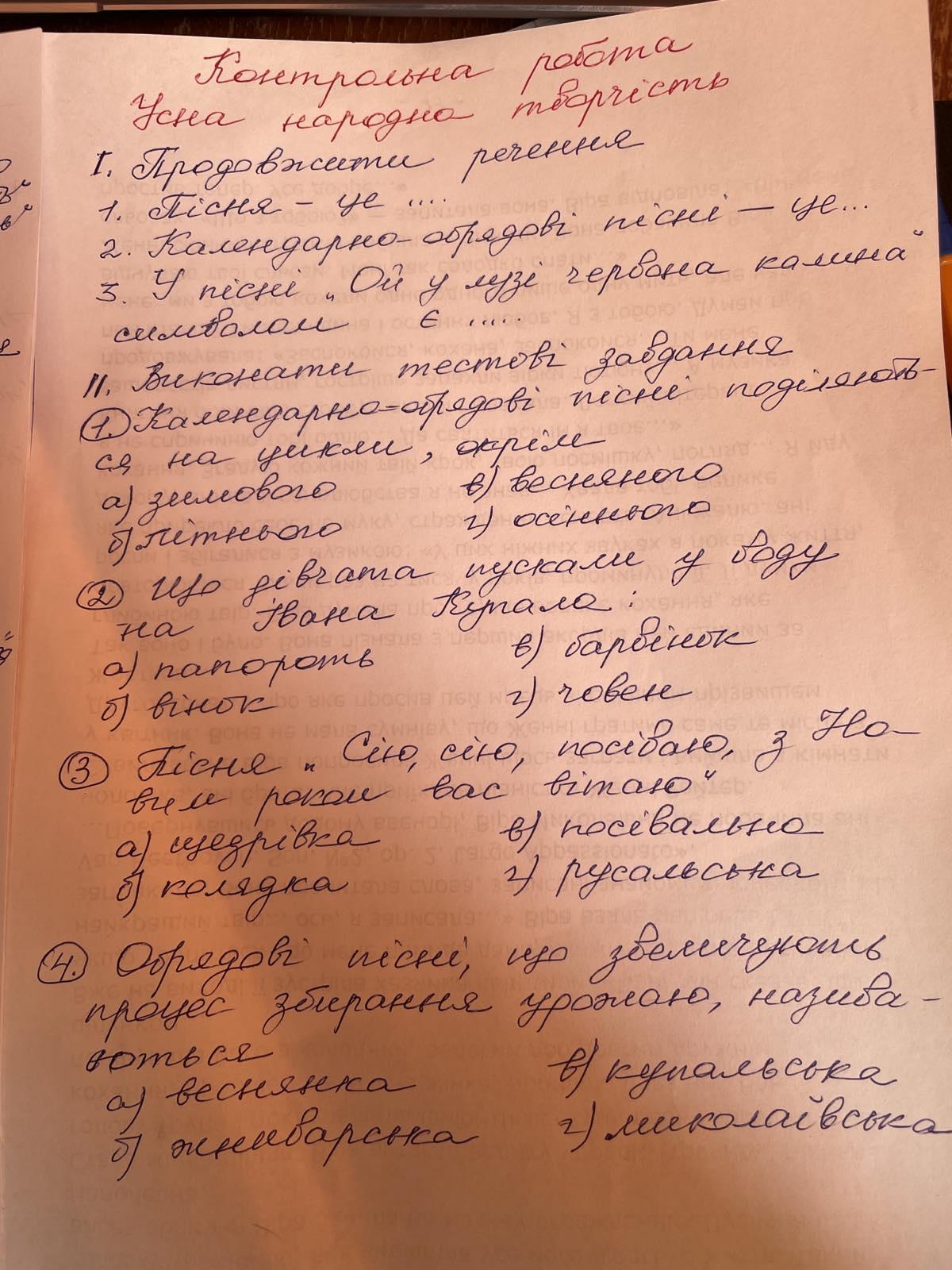 2)Календарно-обрядові пісні — це пісні, які виконувались під час різних народних свят