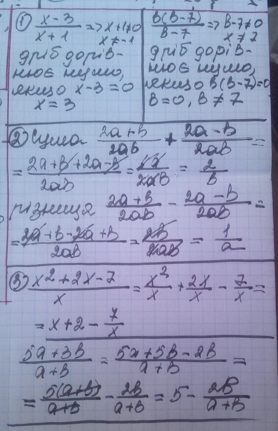 а)х²+2х-7/х; б)5а+3в/а+в;