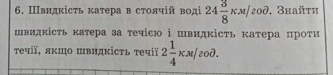во втором действие надо: 24 3/8 + 2 1/4 - это швидкість катере проти течії.