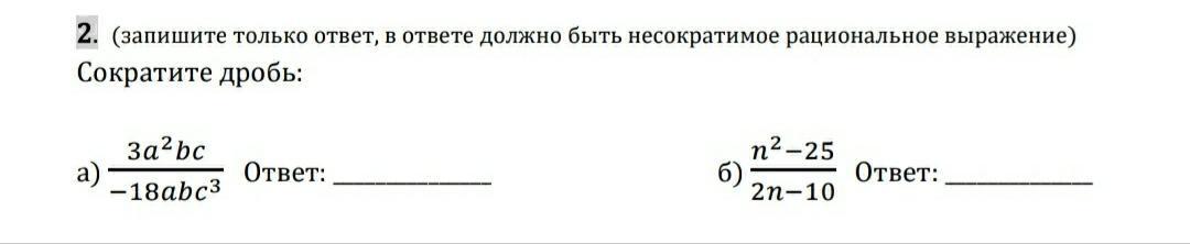 (запишите только ответ, в ответе должно быть несократимое рациональное выражение) Сократите дробь: