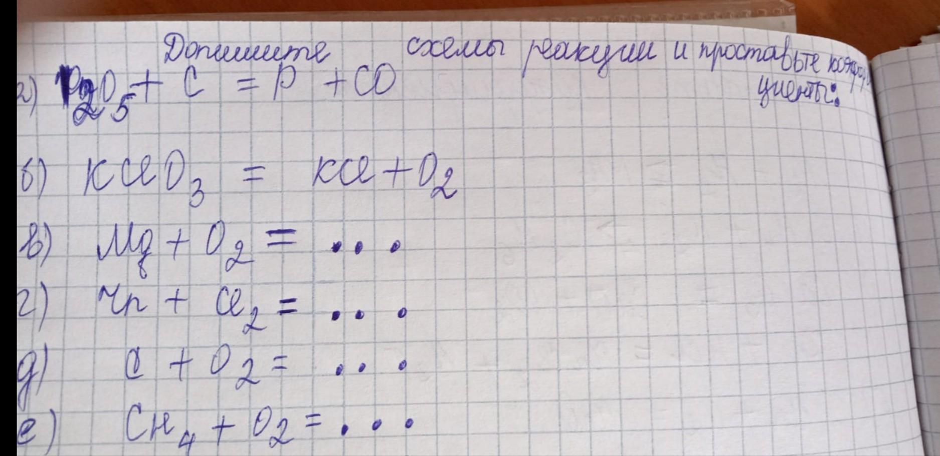 е) CH4 + 2O2 → CO2 + 2H2O