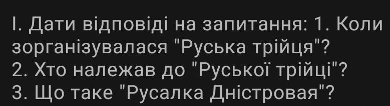 Ответ:1.1834р 2.очолюване Маркіяном Шашкевичем, Яковом Головацьким та Іваном Вагилевичем, що з кінця 1820-х років розпочало на західно-українських землях національно-культурне відродження 3.перший український фольклорно-літературний альманах народною мовою, виданий у м. Буда (з 1873 Будапешт) у 1837 році силами членів гуртка «Руська трійця» Маркіяном Шашкевичем, Яковом Головацьким та Іваном Вагилевичем.
