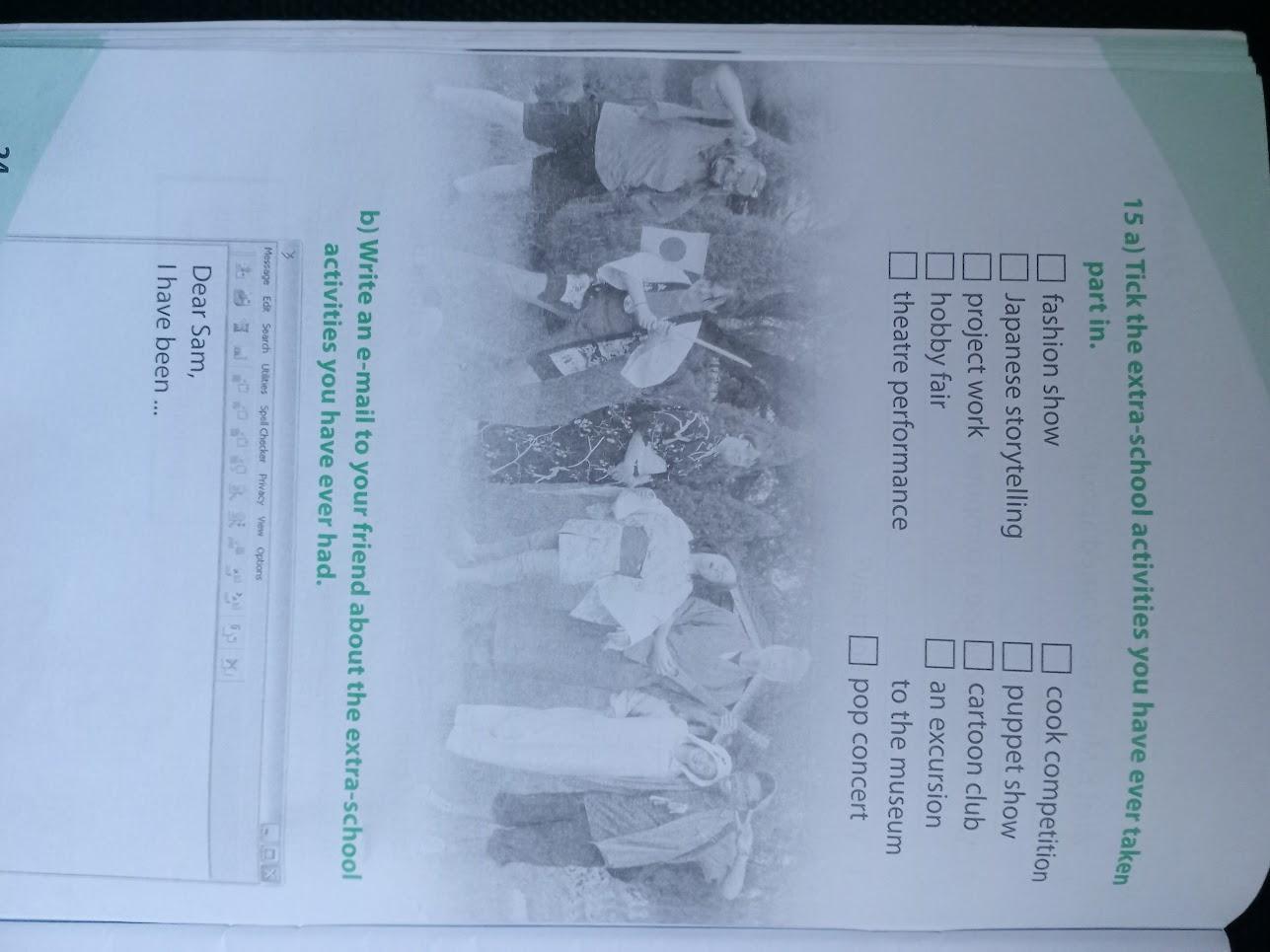 15a - обозначить, в какой внешкольной деятельности из указанных ты когда-нибудь принимал/а участие.