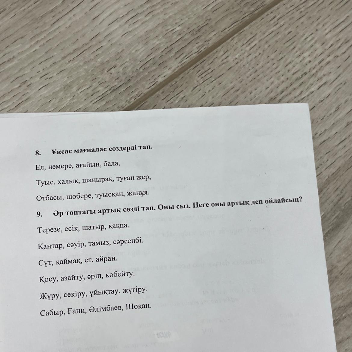 9Артық сөздер:Сәрсенбі, ет, әріп , ұйықтау, Әлімбаев