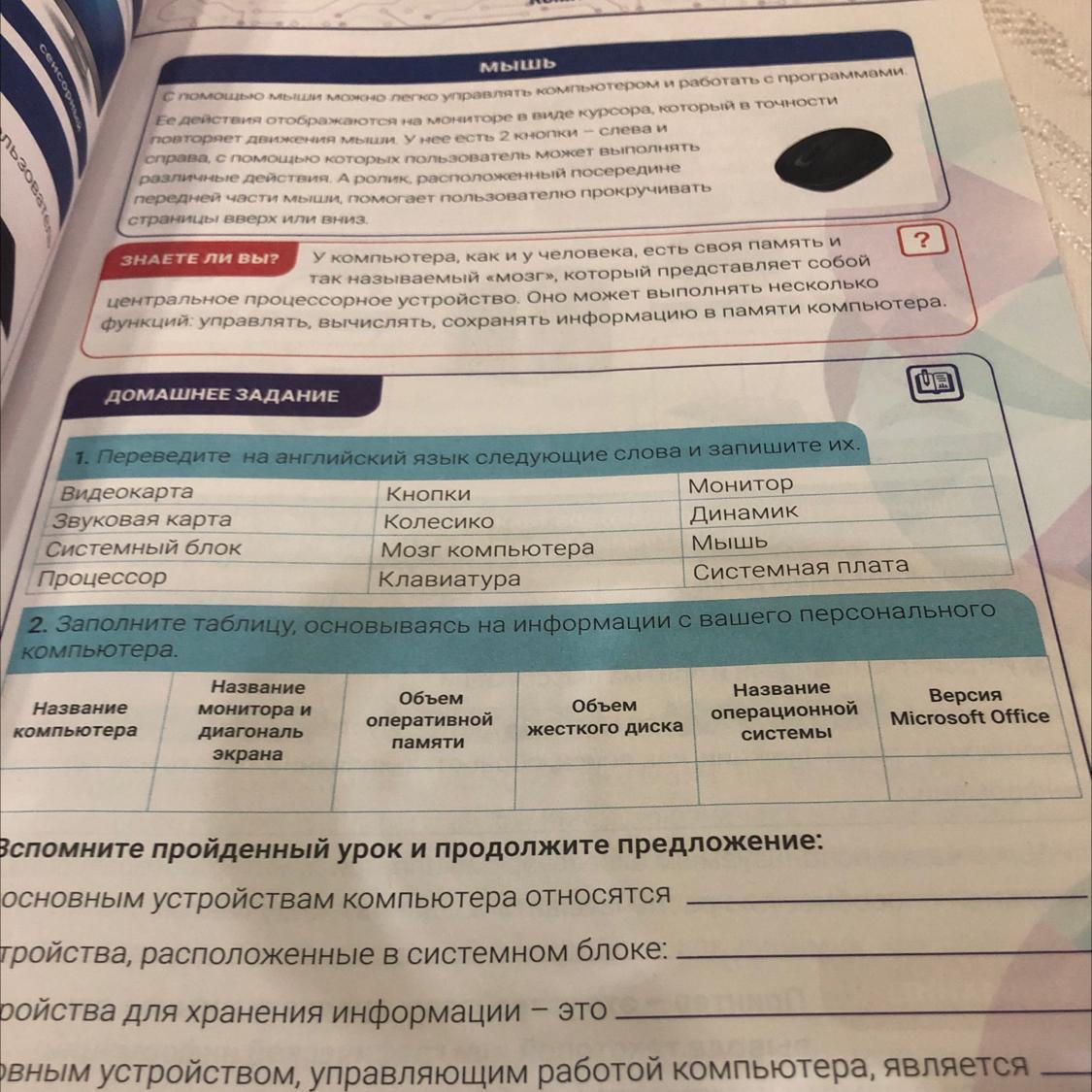 Очень легко) объясняю тут нужно написать характеристику своего персонального компьютера давай скажу свой черти на тетрадку эту таблицу, и где название пиши Intel pc, а где название монитора пиши LG, объем оперативной памяти 8гб, объем жёсткого диска 128гб , название операционной системы виндовс 10, версия Майкрософт офис 2016, Можете поставить хороший балл❤️