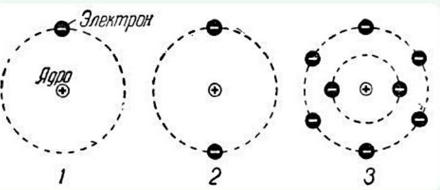 В атомі є ядро з зарядом плюс (+), навколо ядра знаходяться нейтрони - вони нейтральні і є також електрони вони негативні (-)
