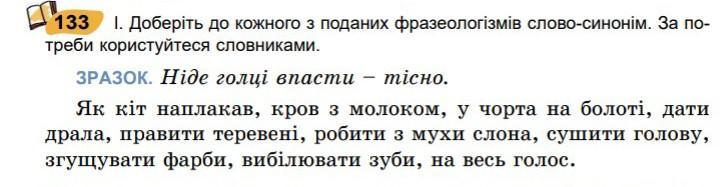 Як кіт наплакав - мало; (багато). Кров з молоком - здоровий; (нездоровий). У чорта на болоті - дуже далеко; (близько). Дати драла - втекти; (залишитися). Правити теревені - говорити дурниці; (мовчати.) Робити з мухи слона - перебільшувати значимість; (применшувати). Сушити голову- напружено думати; (не перейматися.) Згущувати фарби - перебільшувати небезпеку; (недооцінювати щось.) Вибілювати зуби - сміятися;( плакати.) На весь голос - надавати розголосу; (гучно.)