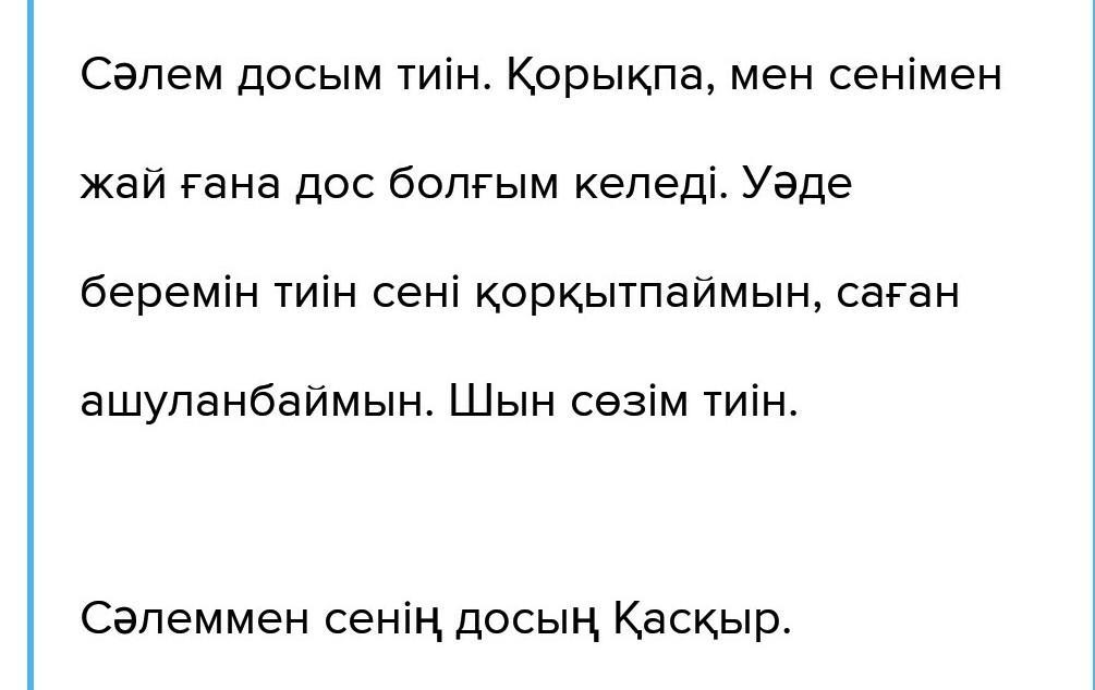 Салем тиін мен қасқырмын сенен кешірім сұраймын енді сені корқытпаймын,және сенің ісіне ашуланбаймын сенімендос болғым келеді.Кел дос болайық
