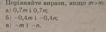 m > n , тоді : а ) 0,7m > 0,7n ; б ) - 0,4m < - 0,4n ; в ) - m < - n .