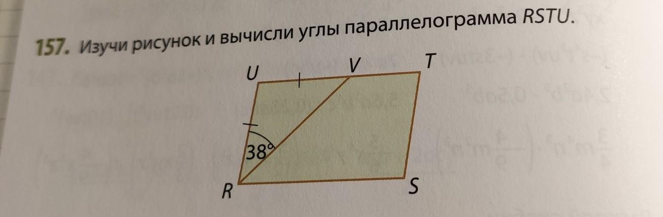 угол U и угол S по 104 градуса, угол R и угол T по 76 градусов