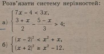б) { ( x - 2 )² < x² + x ; ⇒ { x² - 4x + 4 < x² + x ; ⇒ { - 4x - x < - 4 ; ⇒
