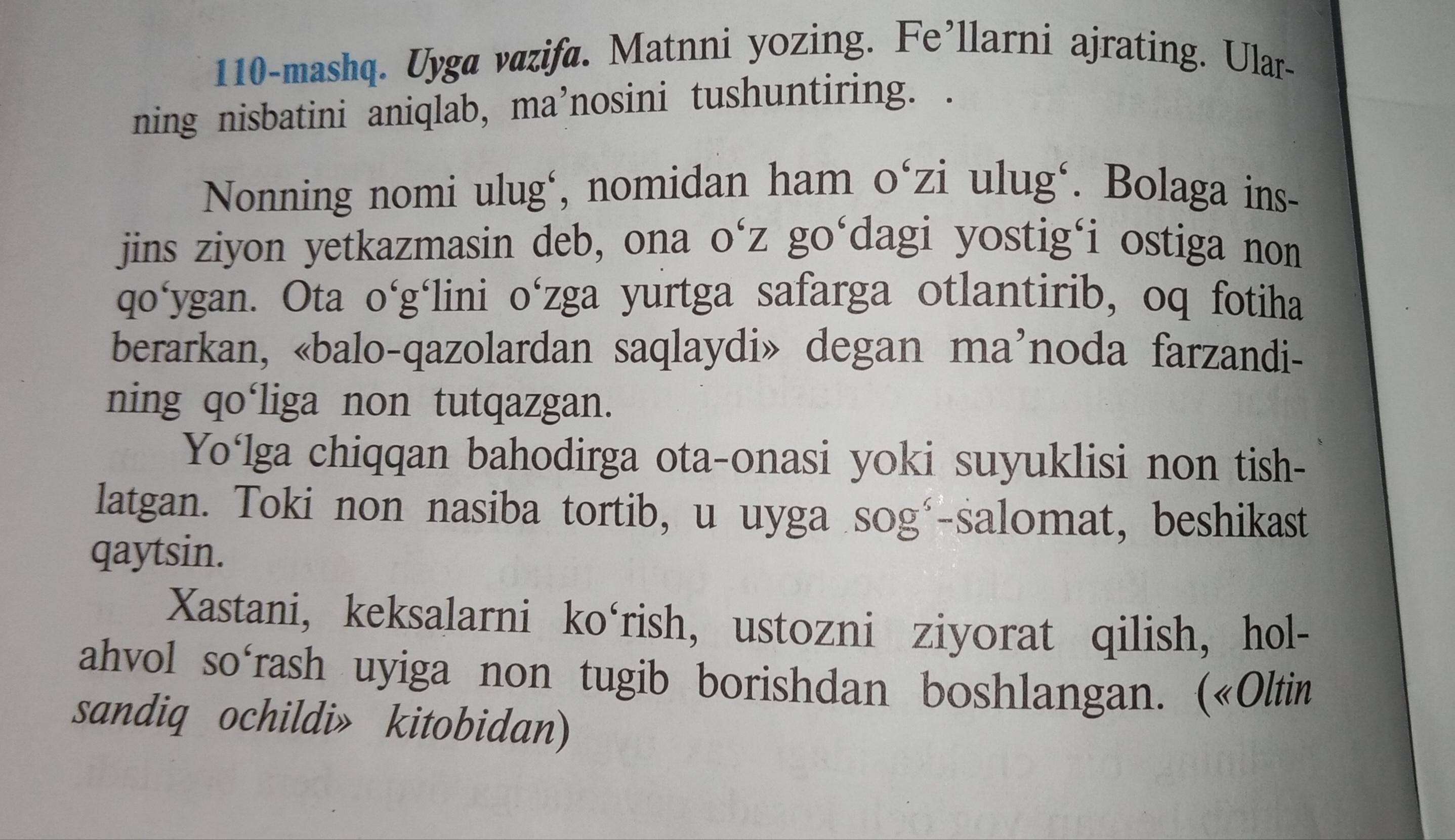 Yetkazmasin, qoʻygan, otlantirib, berarkan, saqlaydi, tutqazgan, tishlatgan, tortib, qaytsin, koʻrish, qilish, soʻrash, tugib, boshlangan.