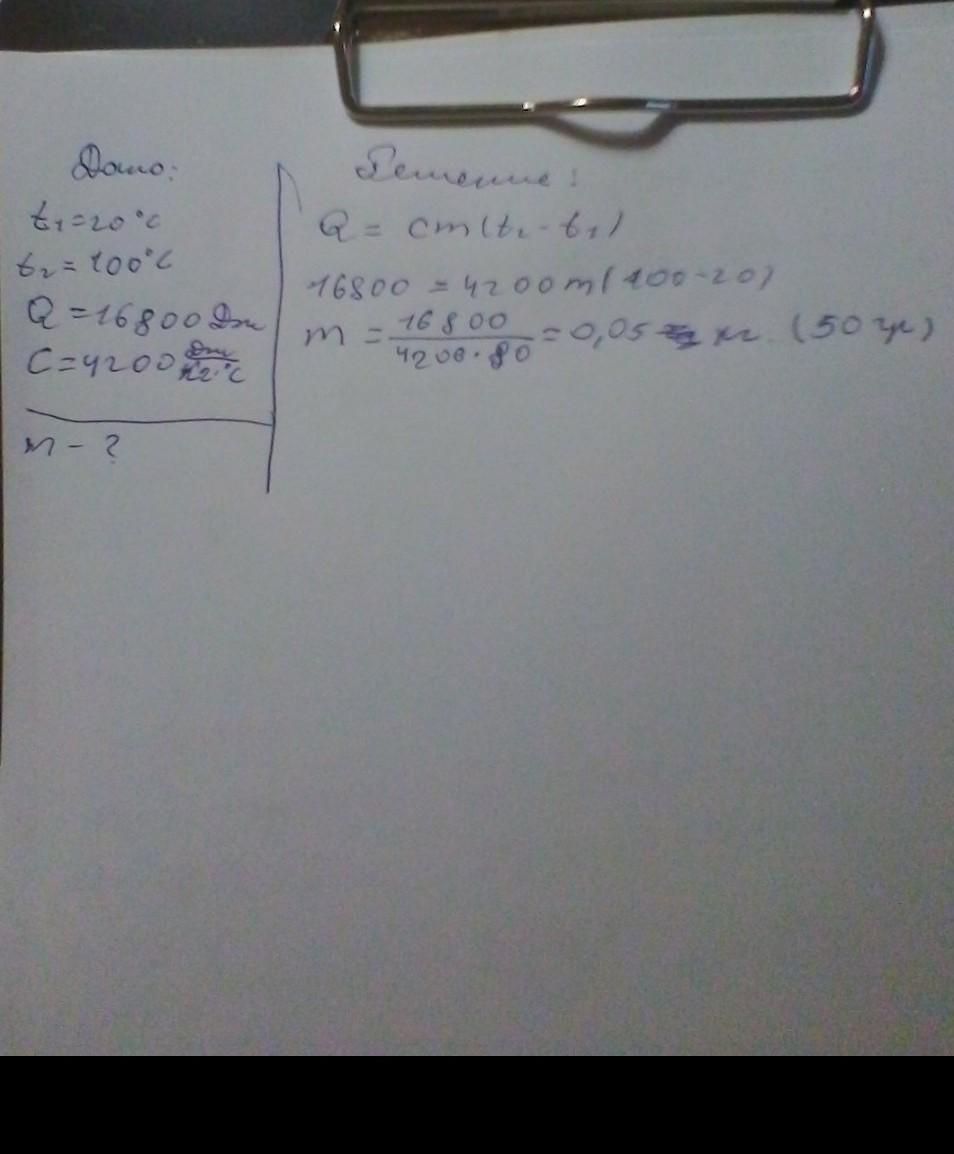 Скільки води можна нагріти від 20°С до кипіння, передавши їй кількість теплоти 16,8 кДж
