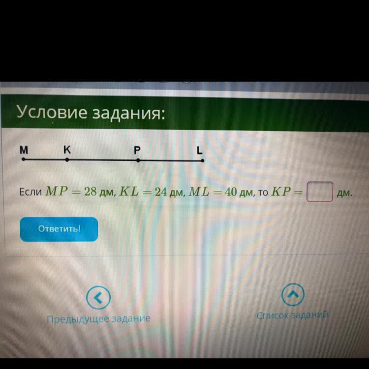 PL=ML-MP=40-28=12дм.