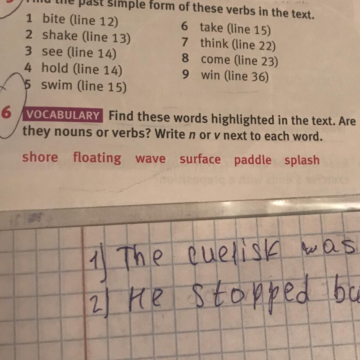 they nouns or verbs? Write n or v next to each word.