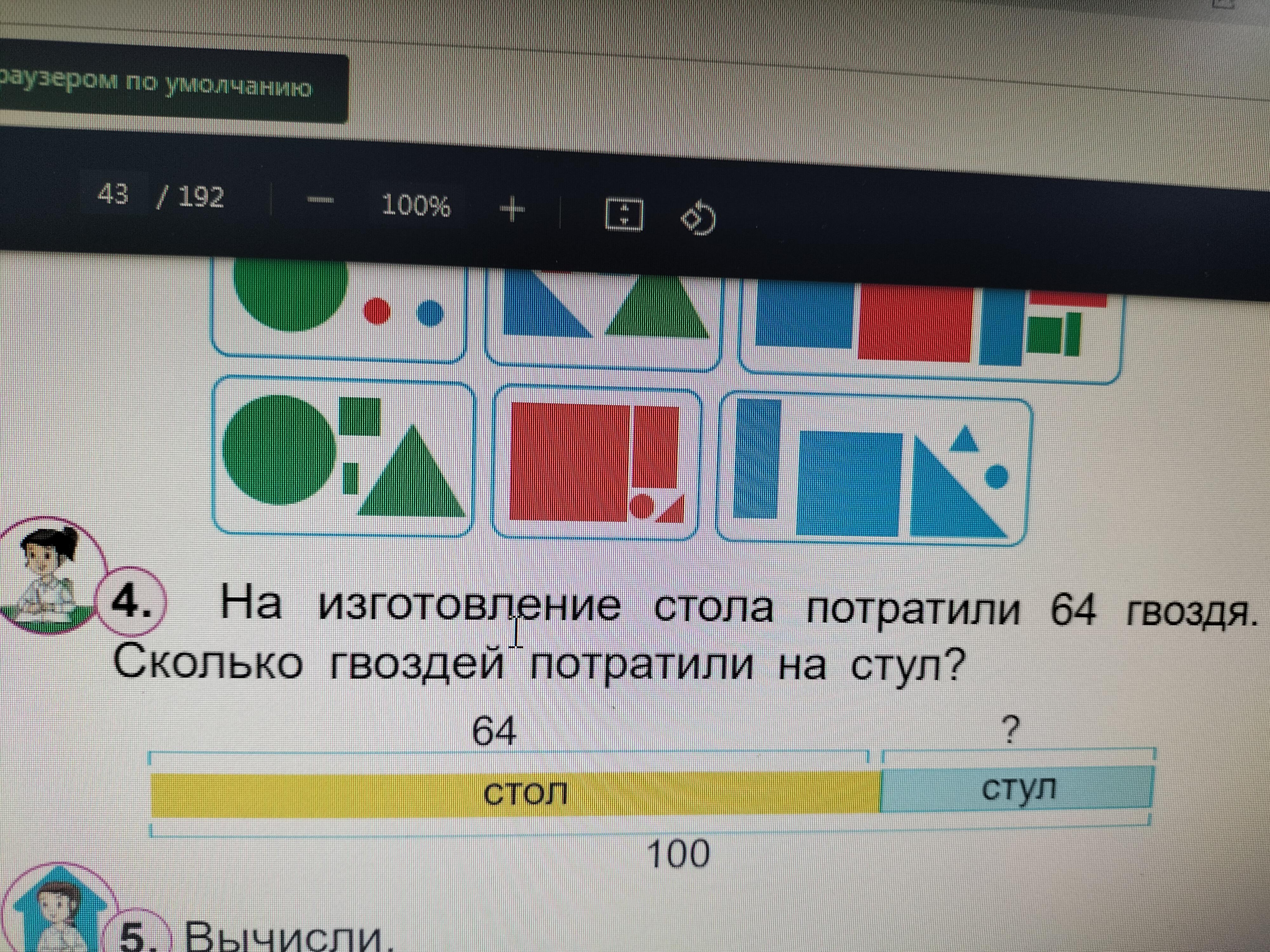 1)100-64=36 Ответ:Использовали 36 гвоздей на стул