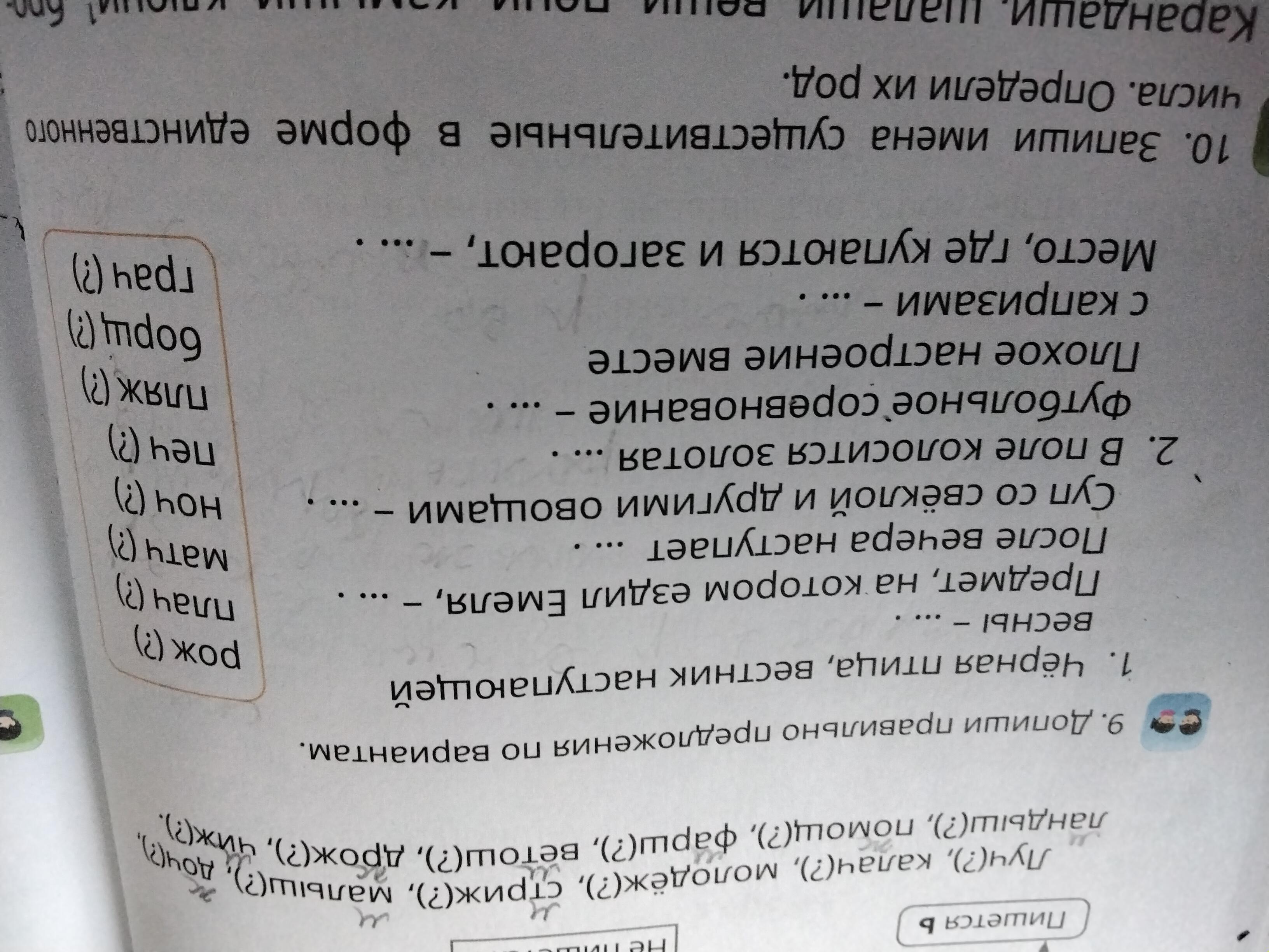 9 номер. главные члены предложения, и поставить склонение на словах где мягкий знак