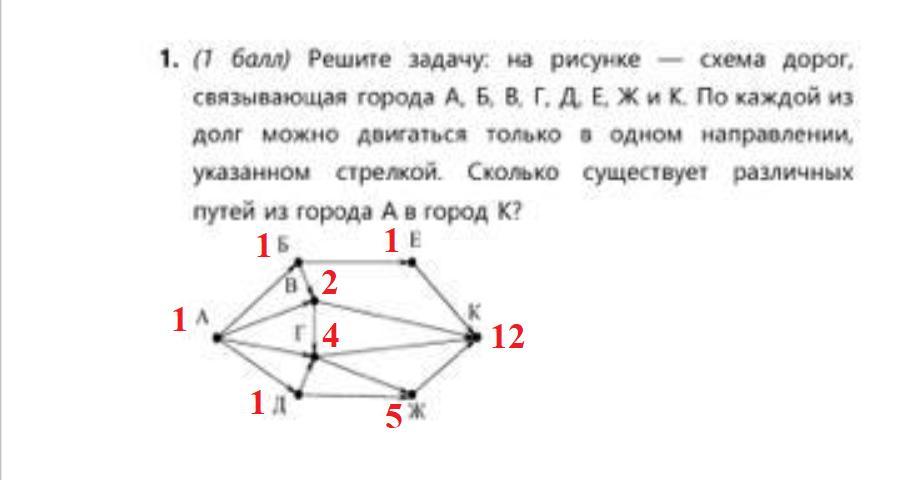 1. существует 12 различных путей из города А в город К