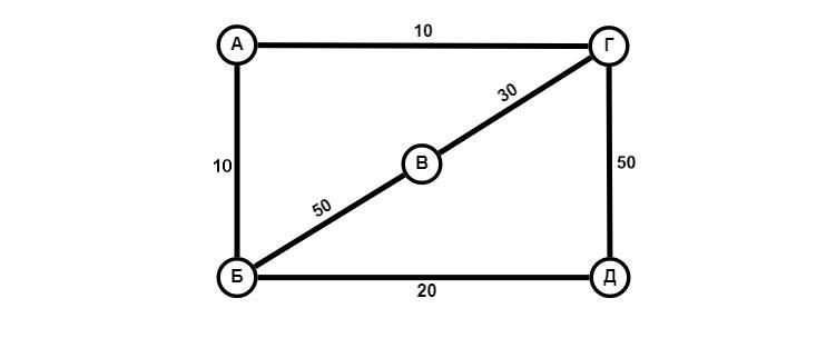 1. рисуем вершины графа (А, Б, В, Г, Д)