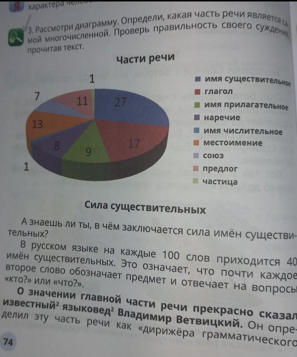 Рассмотри диаграмму Определи какая часРассмотри диаграмму и определи какая часть речи является самой многочисленной Проверь правильность своего суждения Прочитав текст силы существительных А знаешь ли ты в чём заключается сила имён существительных русском языке на каждом 100 слов приходится 40 имён существительных Это означает что почти каждое второе слово обозначает предмет и отвечает на вопросы кто или что а значение главного главной части речи прекрасно сказал известный языковед Владимир витвицкий он определил эту часть речи как дирижёр грамматического оркестра zaka-zaka.com Зорко следят оркестранты зависимые слова и согласуется с ним и писатель Лев Успенский назвал важную часть речи хлебом языка насколько важны хлеб в жизни человека настолько насколько важно имена существительные речью. Помогите пж 12:40 нужно в школу идти пж помогите