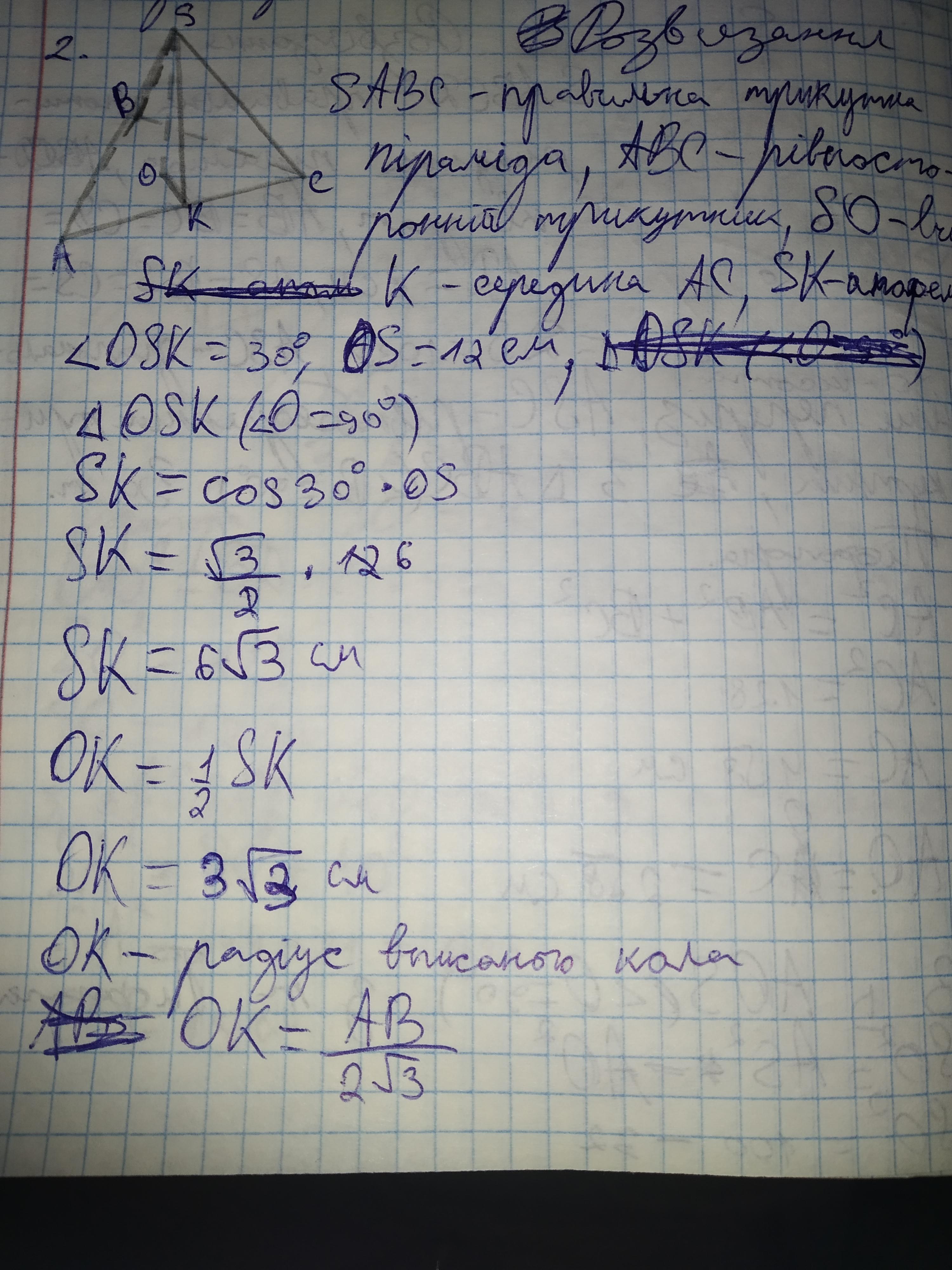 Кут мiж апофемою та висотою правильної трикутної піраміди дорівнює 30°. Знайдіть площу бічної поверхні піраміди, якщо її висота дорівнює 12 см.