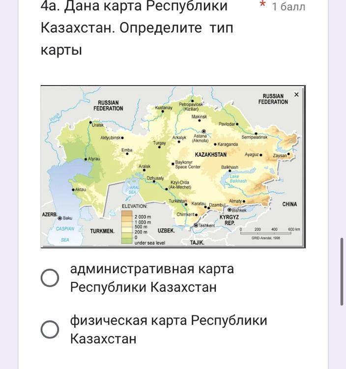 Физическая карта Республики Казахстан
