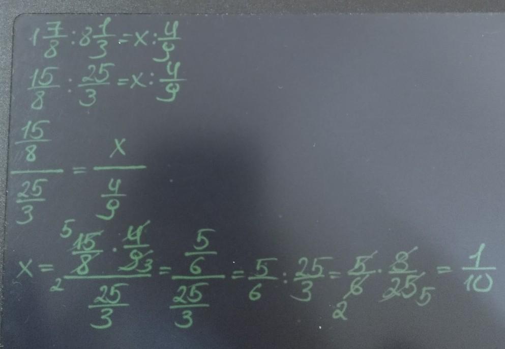 здесь пропорция. сначала я перевела смешанные дроби в неправильные. потом расположила их в дробном виде, чтобы выглядело как истинная пропорция. в буквенном виде это выглядит: а/в=с/д.