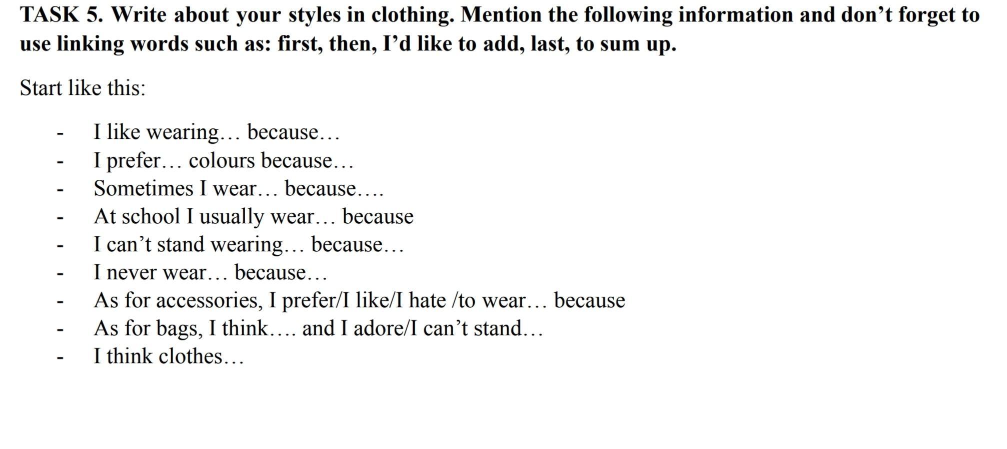 I prefer black clothes because it's my favorite color.