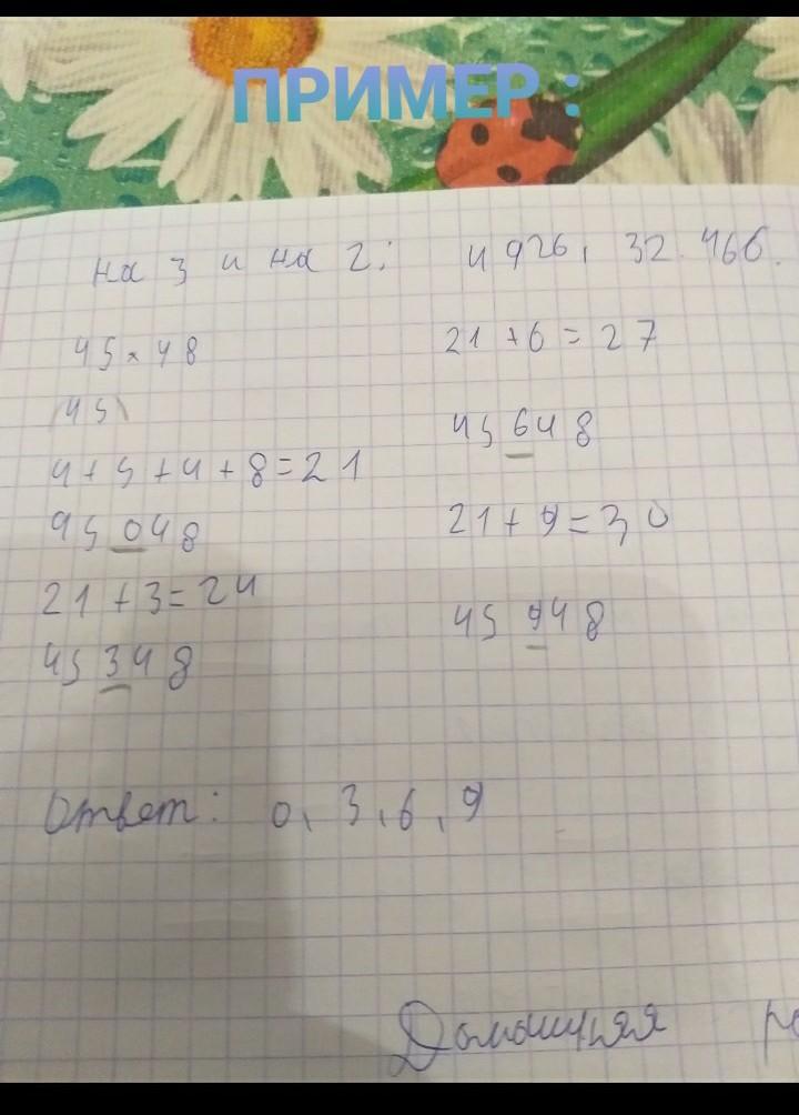 2) 6+8+7=21 - делится на 3, потому вместо звездочки может быть