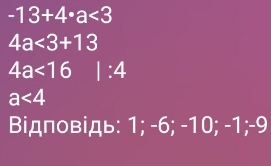 a<4, то есть -9, -1, -10, -6, 1