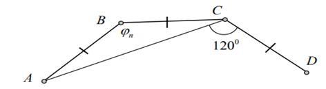 З iіншого боку — ∠BCD = φn . Тому справджується рiвнiсть 2100 – 1/2 φn = φn ⇒ 3/2 · φn = 2100 ⇒ φn = 1400 ,