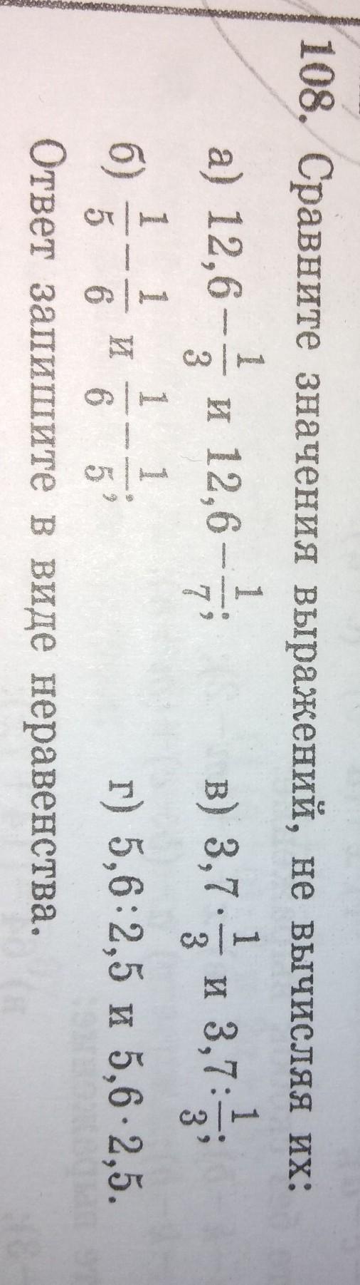а) 12,6 -1/3<12,6 -1/7 ⇒ 1/3>1/7