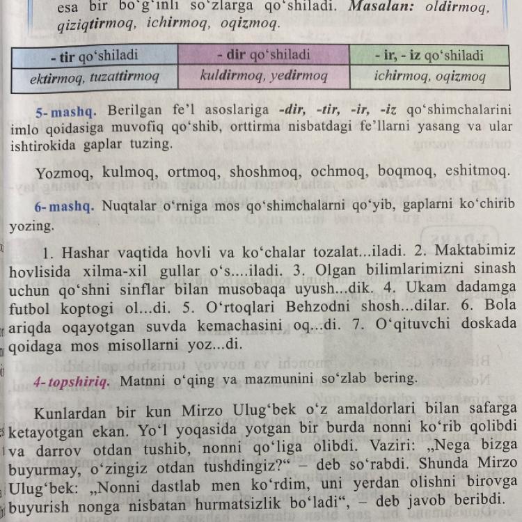 Nuqtalar o’rniga mos qo’shimchalarni qo’yib, gaplarni ko’chirib yozing