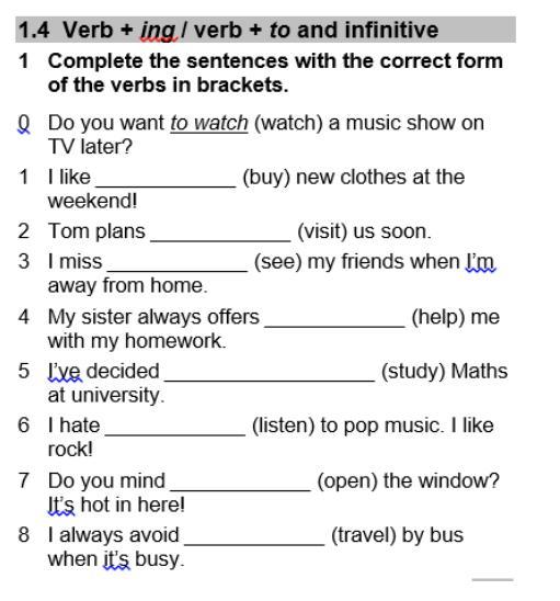 4.4 Verb + ing/ verb + to and infinitive