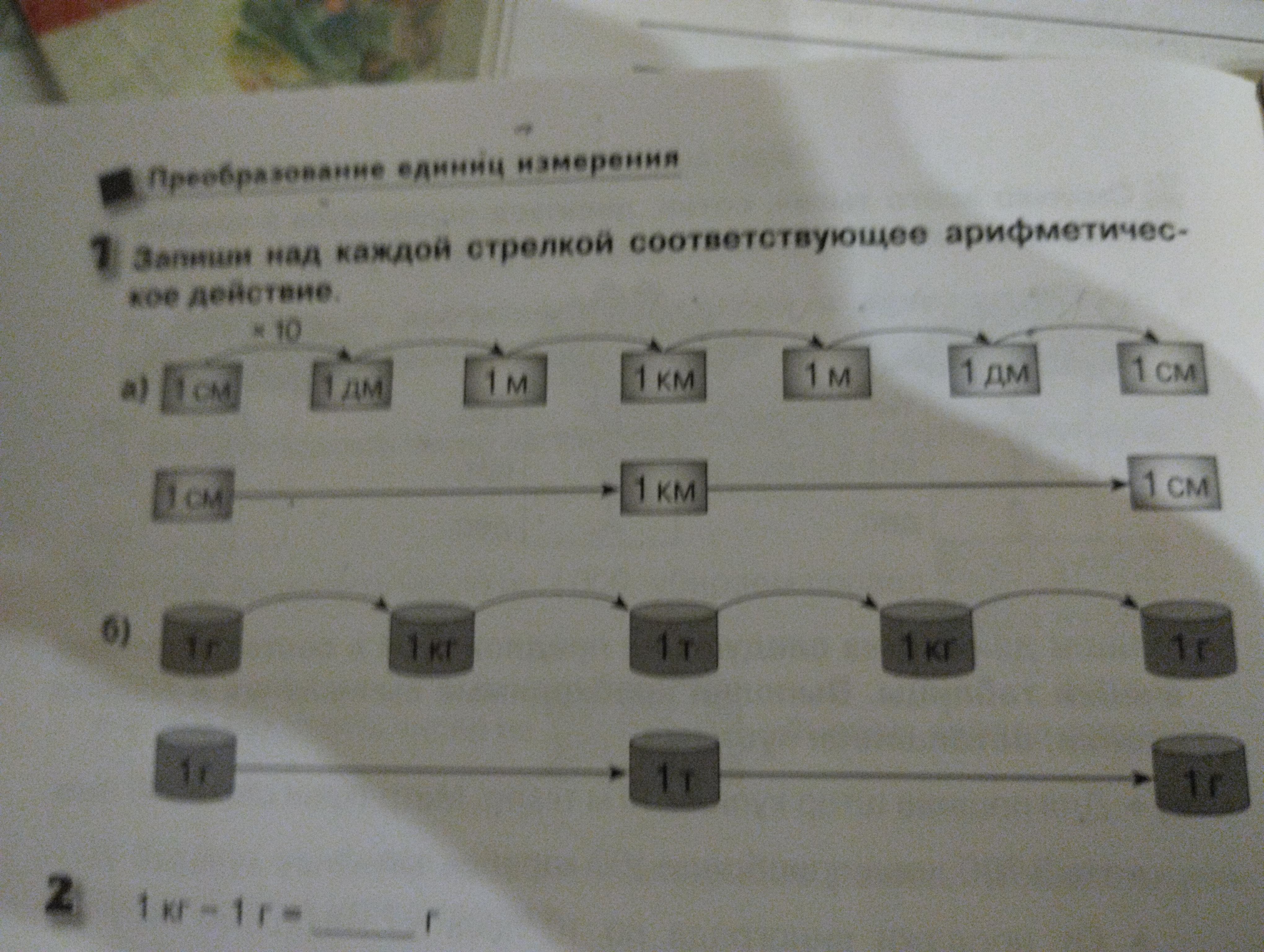 б) 1 г *1 000; 1кг *1 000; 1т :1 000; 1кг :1 000; 1г.