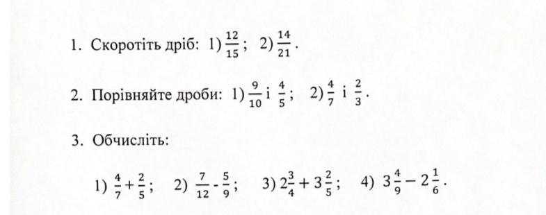 3. 1) 4/7+2/5=(4*5+2*7)/35=34/35; 2) 7/12-5/9=(7*3-5*40)/36=1/36;