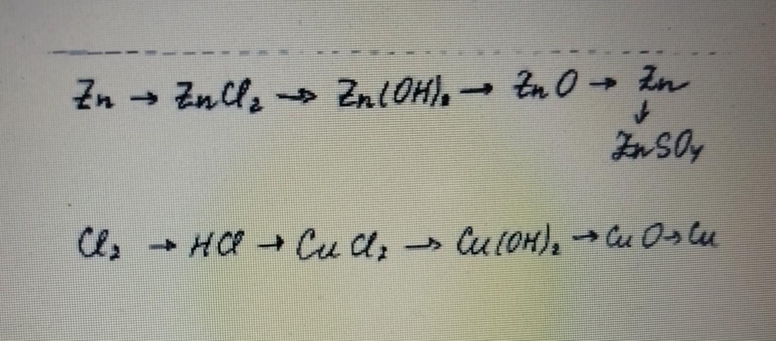Zn→ZnCl₂→Zn(OH)²→ZnO→Zn→ZnSO₄