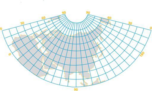 Пояснення: так як конічна проекція має унікальний стиль в картографії, вона буквально створюється від 2 полюсів. Тож Норвегія буде повністю входити в конічну проекцію, а Індонезія частково.
