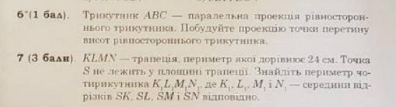 1.У правильному трикутнику центр вписаного кола - точка перетину медіан, а при паралельній проекції зображенням медіани є медіана (середина відрізка переходить у середину відповідного), значить зображенням центру вписаного в правильний трикутник АВС кола буде точка перетину медіан А₁В₁С₁