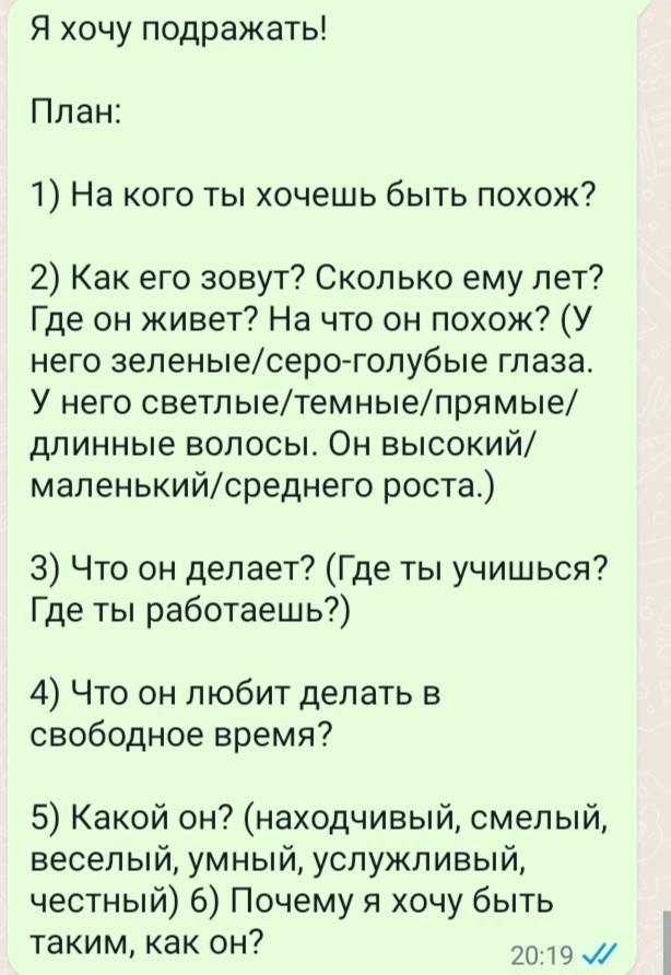 Я хочу быть похож(а) на Леонардо Ди Каприо. Его полное имя - Леонардо Вильгельм Ди Каприо. Ему 47 лет, живёт он в Соединённых Штатах Америки, а именно в Лос-Анджелесе - штат Калифорния. У него голубые будто небо глаза, светлые от природы волосы средней длинны. Рост у него как для мужчины средний - около метра восьмидесяти. Леонардо американский актёр и даже лауреат премии "Оскар". Лео в свободное время всегда занимается благотворительностью и защитой окружающей среды. Актёр никогда не скрывал, что в юности был настоящим хулиганом, проявляя свой сложный характер не только в общении с близкими, но и в работе. Леонардо Ди Каприо талантливый актёр, который достиг успеха и не тратит только на дорогие машины и дома, но и помогает нуждающимся, занимается благотворительностью и т.д., поэтому я хочу быть как он.