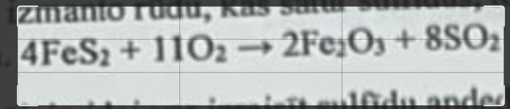 в) Если для производства железа используется руда, содержащая сульфиды, то ее сначала сжигают. Процесс представлен уравнением химической рекции